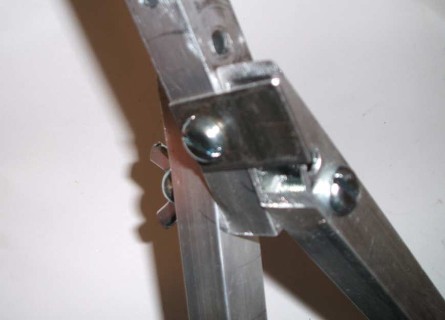 Arrange the leg so that the head of the screw holding the stops to the middle leg points towards the channel.