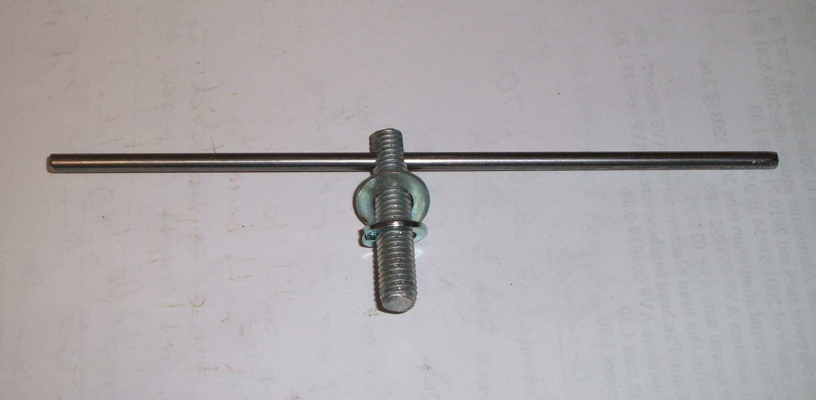 Cut 160mm of plain steel M4 rod and push though hole.