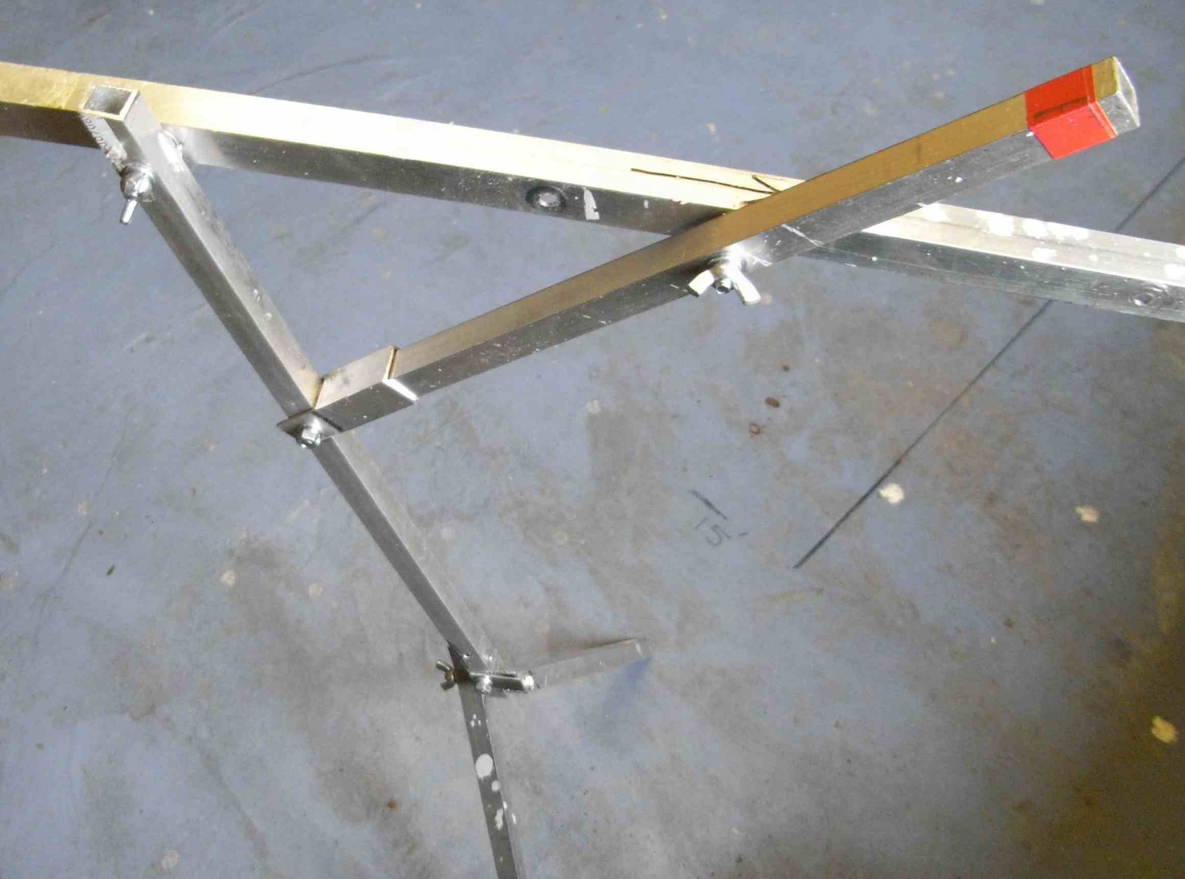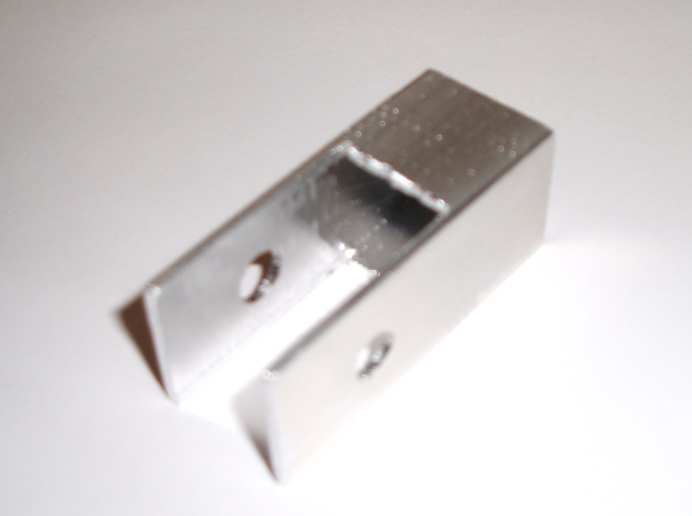 Cut 55mm of 20mm x 20mm square aluminium tube. Cut one end with a 90 degree peak
