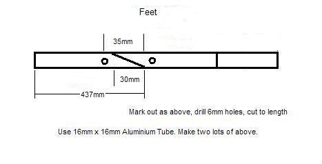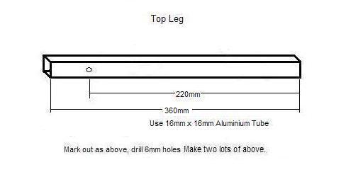 If 6mm screws, nuts, etc are not available then substitute them with 5mm parts and drill the holes accordingly. If the 16mm square tube is available in 2m lengths, it may work out cheaper to buy two of these instead of 4 x 1m lengths.